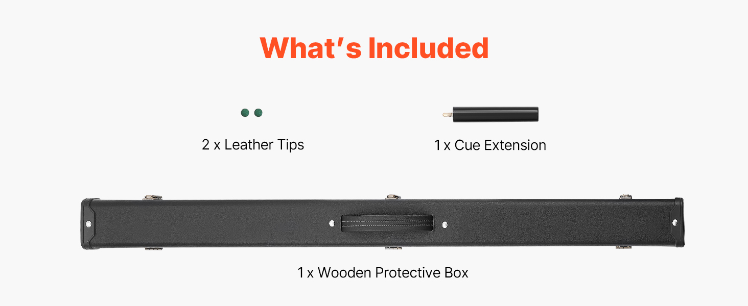 - Essential Cue Kit: This set includes: 1 x wooden box, 1 x extension, 2 x leather tips. Ideal for beginners, this set allows you to start practicing right away, making it the ideal choice for those new player to the game