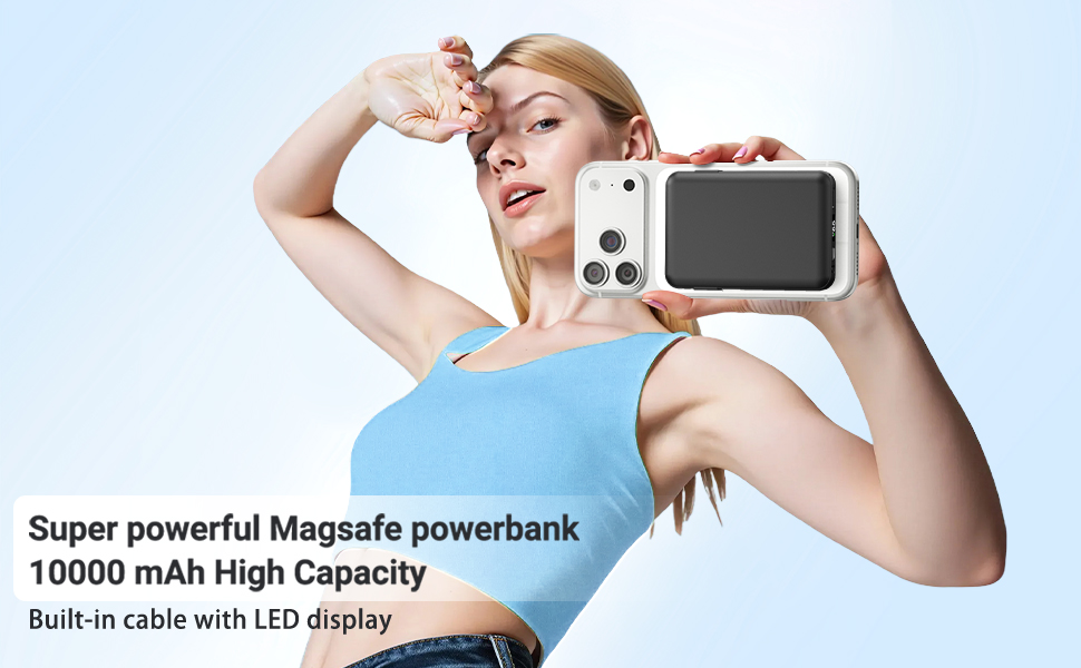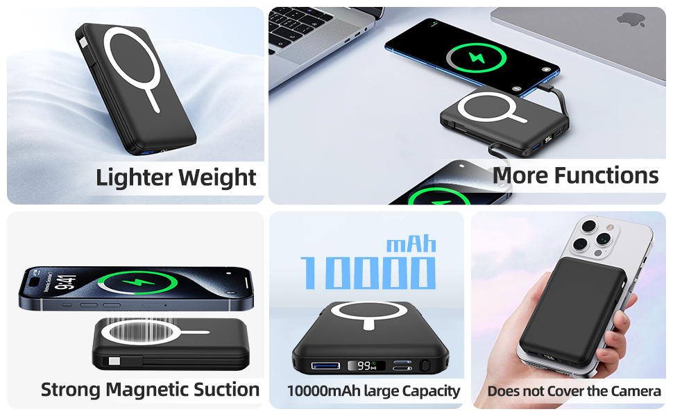 【Magnetic Power Bank with Built in Cable】Portable wireless charger with a powerful magnetic suction core, Support magnetic wireless charging, It's designed for iPhone 17/16/15/14/13/12 Plus/Mini/Pro/Pro Max.And this power bank equipped with 2 different type cables,for charging needs of different mobile phone users