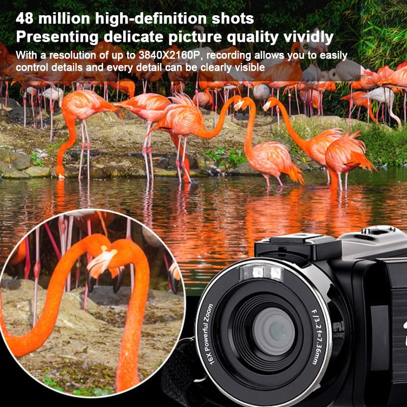 【48MP HD 4K Camcorder】This video camera supports up to 4K video resolution and 48.0 MP image resolution. The 18x digital zoom can enlarge to capture all the important details and provide a clearer view of distant objects. The 270° rotatable touch screen offers more shooting angle choices.