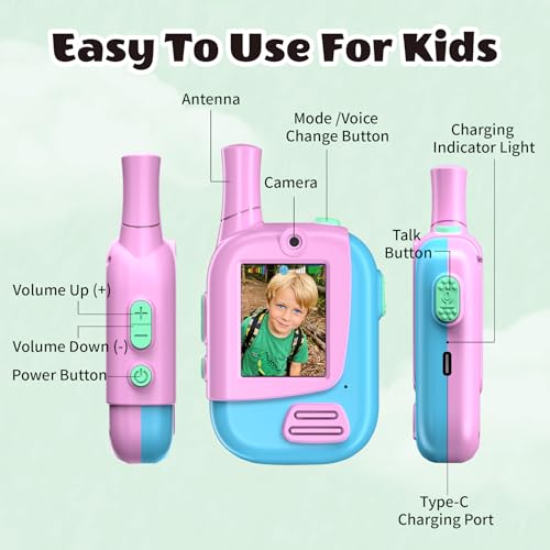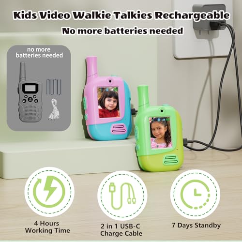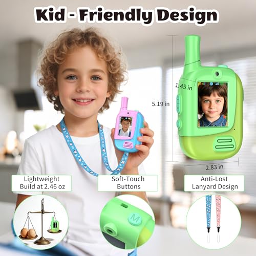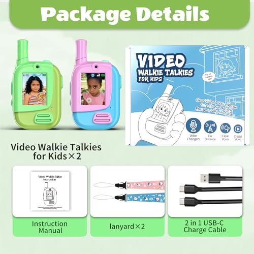 - Ideal Toys Gift for Kids:This cute video walkie talkies for kids pink green 2 pack makes an excellent present for 3 4 5 6 7 8 9 10 11 12 year old toddlers, boys, and girls— ideal for Christmas, birthdays, parties, or special holidays!For a feature-packed and entertaining communication toy for children,they are an excellent choice.They encourage outdoor play and imaginative games, and the extra features make kids stand out from the crowd.