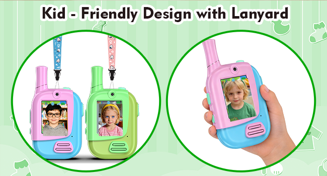 - Kid-Friendly:The buttons of walkie talkies are simple and easy for kids aged 3–12 to understand and use.Designed with a lightweight build(17.2×7.2×3.7cm&70g),they fit perfectly in little hands and are easy for kids to grip,also include lanyards,so kids can keep their walkie talkies with video handy during outdoor play,no more losing them while they explore!