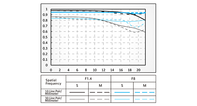 - MTF Performance: This lens delivers excellent center-to-edge sharpness and contrast, suitable for capturing high-level detail and clarity. The MTF curve indicates consistent image performance across the frame.