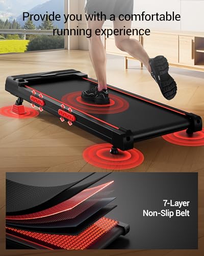 Anti-Slip & Shock Absorption for Safer Workouts: Featuring a 7-layer non-slip belt, rubber pads, and silicone absorbers, this walking treadmill minimizes impact on your knees and joints. This system safeguards your body during exercise, and allows for longer, more effective training sessions
