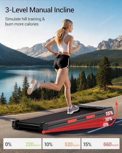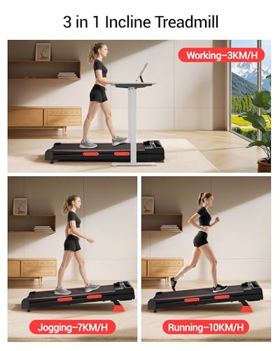 Walking Pad Treadmill with 15% Incline, 3 in 1 Under Desk