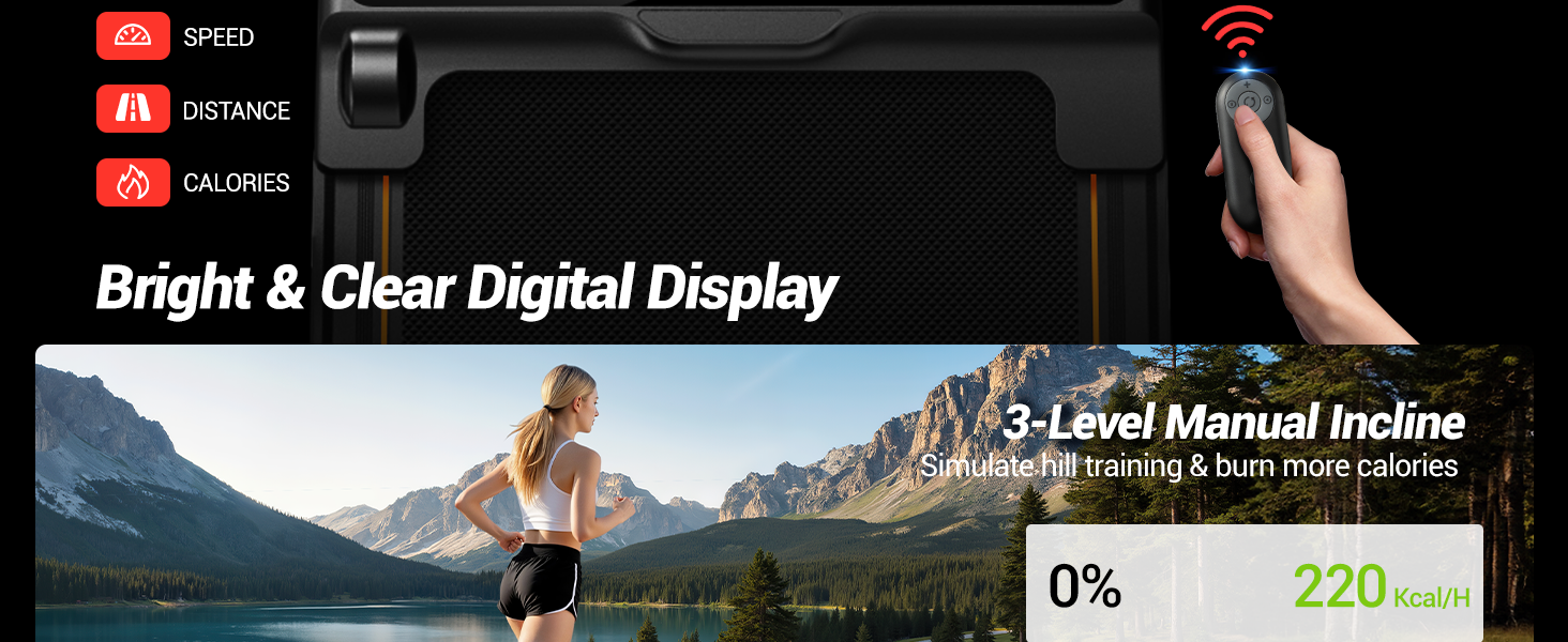 Focus on Your Workout: Equipped with an LED display for real-time tracking of your time, speed, distance, and calories, this walking pad for home office helps you monitor your progress. The included remote control allows you to adjust speed and settings, all without interrupting your workout, so you can stay focused and achieve better results