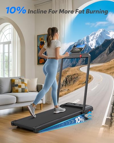 Walking Pad with 10% Incline, Folding Treadmills for Home