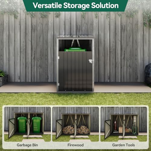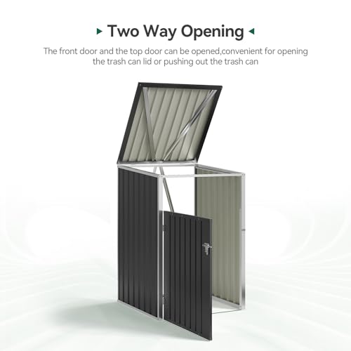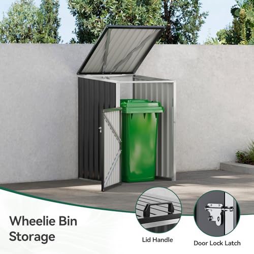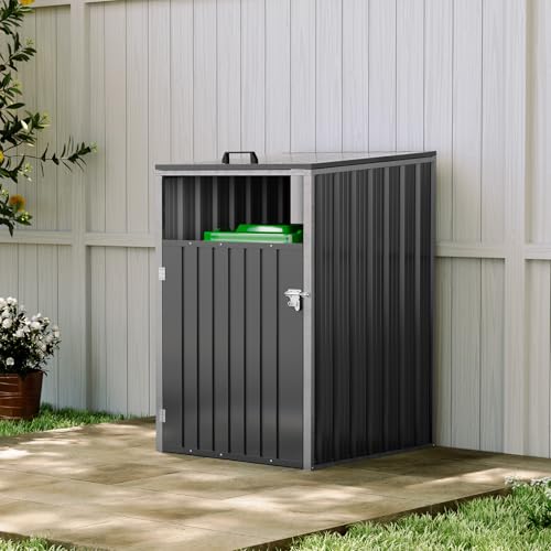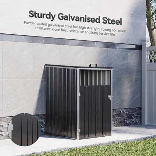 Warmiehomy Wheelie Bin Storage Single Bin Storage for Wheelie Bins Galvanized Steel Outdoor Garbage Can Store with Locking Door Wheeled Bins Hideaways with Lifting Lids,Charcoal Black