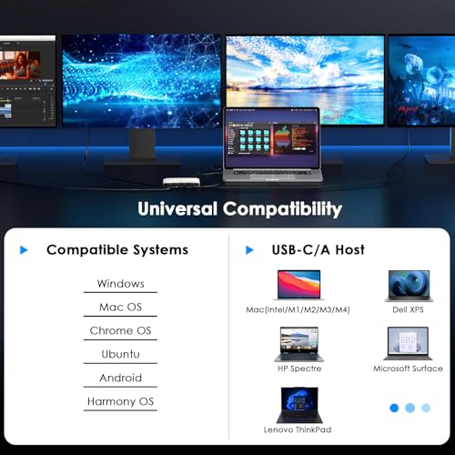 System Support: Windows 11/10, macOS 11 or later, ChromeOS 100+ systems with Thunderbolt, USB 4, USB-C or USB 3.0; Note: iOS, Linux, Unix are not supported. It's worth noting that Displaylink driver installation is required.