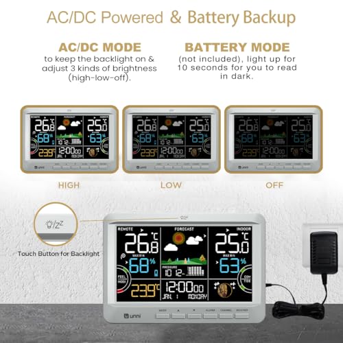 AC/DC Powered & Battery Backup – AC/DC MODE: to keep the backlight on & adjust 3 kinds of brightness (high-low-off). BATTERY MODE(not included), light up for 10 seconds for you to read in dark.