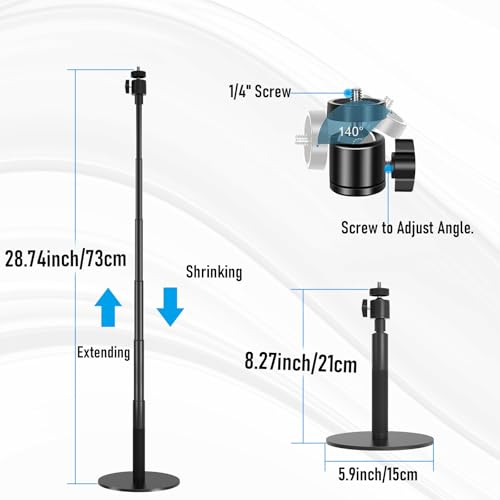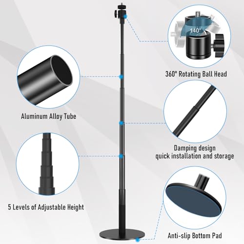 - 【Multi-Angle Adjustment】The metal ball head at the top supports 360° horizontal rotation and up to 140° tilt, and comes with a standard 1/4” thread for easy camera positioning. It is suitable for video calls, conferences, online classes, live streaming, selfie broadcasting, and more.