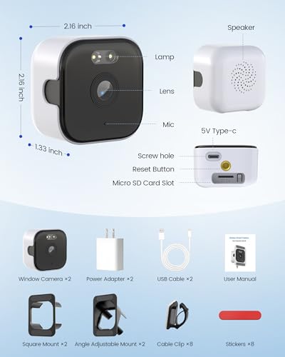 【2K 3MP Ultra HD Night Vision】This window camera utilizes 3-megapixel 2K high-definition video technology, safeview window camera delivering 2K resolution with a 108° wide-angle coverage. security camera indoor the starlight sensor captures vivid colors in low-light conditions, enabling clear identification of people, vehicles, and moving objects at night.