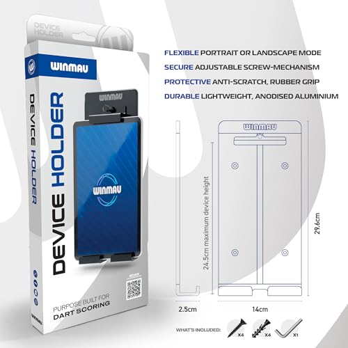 WINMAU Dart Device Holder – Premium Wall Mount for Tablet & iPad | Adjustable Tablet Wall Mount Holder for Digital Scoring Apps | Ideal for Darts Scoring, Home, Office & Game Rooms | Darts Accessory
