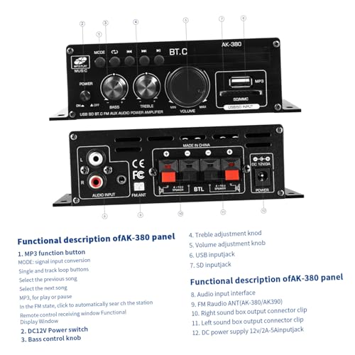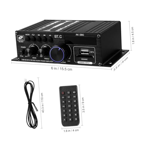 Features -Size:15.50X8.50X4.50cm/6.09X3.34X1.77in car amplifiers -Product Info:12v amplifier -Resolution: 47K Radio Receiver -Impedance: 4-16Ω car sound system -Material:Aluminum alloy, Plastic Audio Receiver -Rated power: 40WX2 Stereo Receivers -SNR: 90db car audio amplifier – Wireless connection: With no complicated wiring required, this amplifier for convenient music playback and various connection car audio receivers. -Rated frequency: 20-20KHZ mini stereo receiver -Rated voltage: 12V home amplifier -Distortion rate: 0.1 home audio amplifier – Compact and lightweight: This sound amplifier is small and lightweight, making it easy to carry and install, and doesn’t take up much Receiver For Wired Speakers. – Multiple input options: This audio amplifier supports multiple input options, such as USB and card, making it easy to connect to various devices home stereo amplifier. – Excellent sound: Equipped with a high-power audio amplifier chip, this device provides powerful and excellent audio performance speaker receiver. -Color:Black mini receiver for speakers