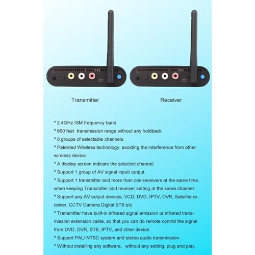 - WIDE APPLICATION: The wireless AV transmitter receiver supports sound and video transmit in PAL/NTSC formats, has strong compatibility and can be widely applied
