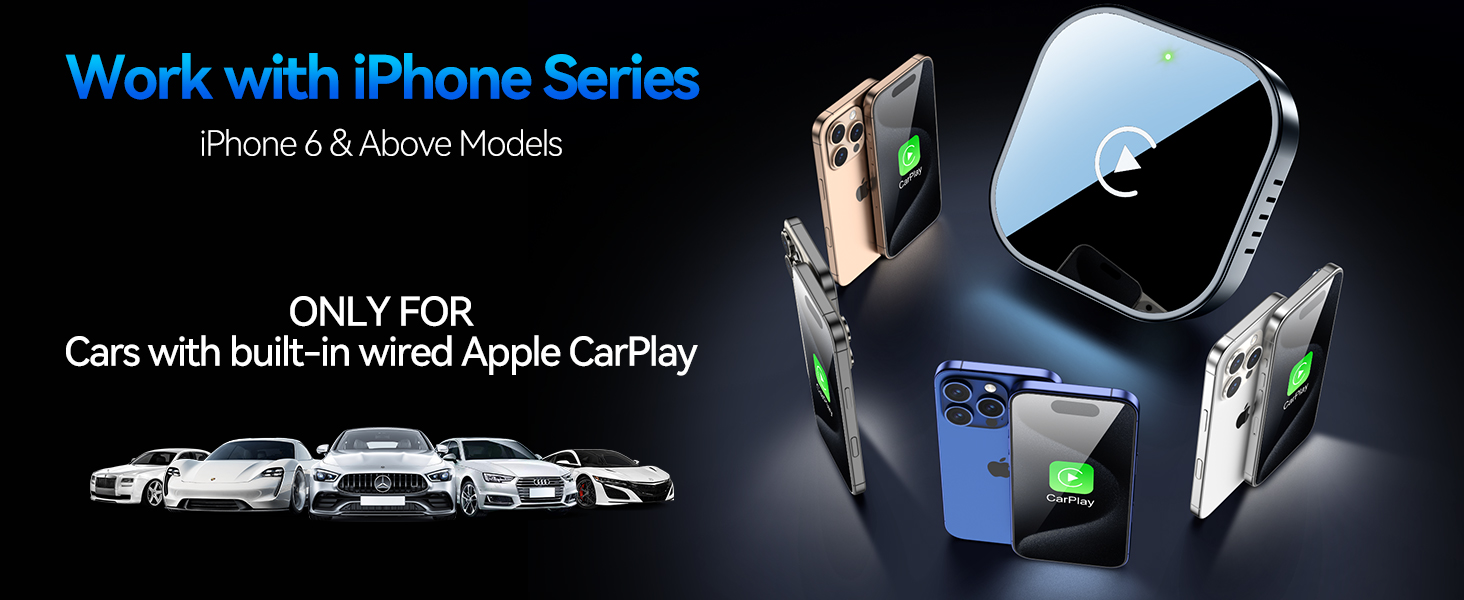 Only for Factory-Wired CarPlay Vehicles – Not compatible with vehicles that do not already support wired CarPlay. Works with factory installed wired CarPlay systems. Supports iPhones with iOS 10 and above. Includes both USB-A and USB-C adapters to ensure compatibility with most car USB ports.
