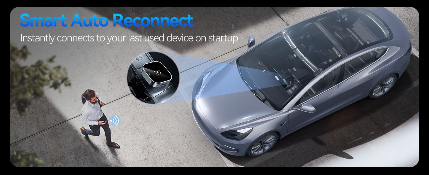 ⚡ Plug and Play with Instant Auto-Reconnect – No complicated setup needed. Simply pair via Bluetooth, and the CarPlay wireless adapter is ready to go. It automatically reconnects every time you start your car, ensuring a hassle-free experience. With the latest Bluetooth technology, enjoy twice the speed, and have CarPlay up and running before you even shift gears!