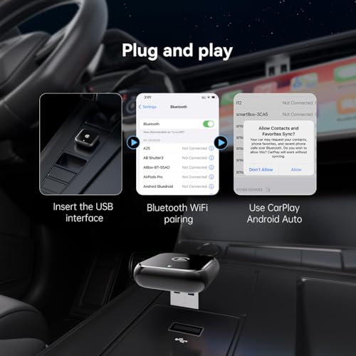 ⚡Minimalist 3-Step Setup: ①Plug into your car's USB port ②Enable phone Wi-Fi & Bluetooth ③ Select 'SmartBox-XXX' in Bluetooth settings. Then enjoy automatic reconnection every drive. Achieves 83% faster installation than competitors with 30-second setup (even for beginners). No repeated pairing required.