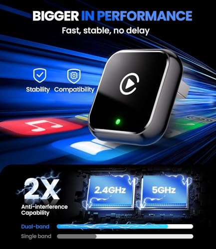 ✅The Ultimate Wireless Connection Solution:finally ditch those annoying cables for good! Powered by advanced 5.8GHz Wi-Fi + Bluetooth 5.3 and an 8-core processor, our adapter delivers 5× faster response and military-grade stability vs standard dongles. CarPlay adapter for iPhone 100% original sound quality and picture playback.