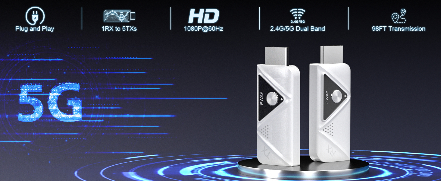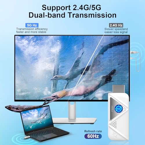- 164ft/50m Range & 5G + 2.4G Dual-Band Stability & Dynamic Stability Equalizer Engine: Experience a transmission range of up to 164ft (50m) with our HDMI wireless transmitters and receivers , offering flexible placement and convenient use. Wireless HDMI adapter featuring an advanced dual-band chip (5G + 2.4G) and the Dynamic Stability Equalizer Engine
