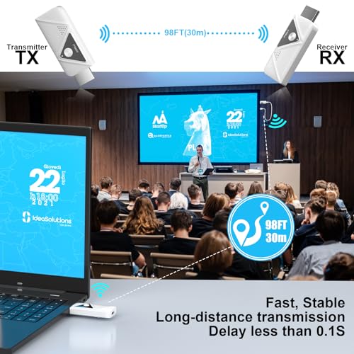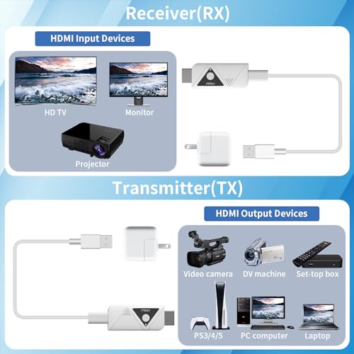 - Portable & Wide Compatible: Wireless HDMI transmitter and receiver compact and lightweight (0.1 lbs), it’s perfect for travel, meetings, or creative work. Enjoy high-quality wireless HDMI connectivity across devices like PCs, laptops, cameras, DVs, TV boxes, projectors, monitors, and HDTVs—wherever you go.