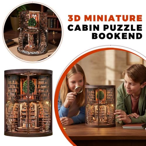 - 【Wisdom Rings Book Nook】This DIY puzzle bookend kit features a 3D mini house design—perfect for bookshelf decoration, creative assembly, and themed display.