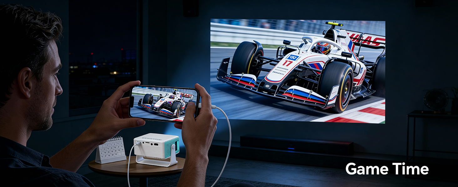 - 【Native 720P Resolution, Supports 1080P Input】 Enjoy clear, vivid visuals with native 720P resolution, supporting 1080P input for smooth playback. Ideal for movies, casual gaming, and TV shows in bedrooms or small living spaces. For the best viewing experience, we recommend using a projection screen (contact us if needed).
