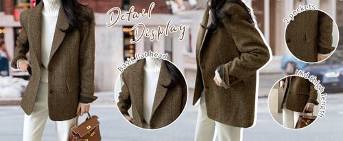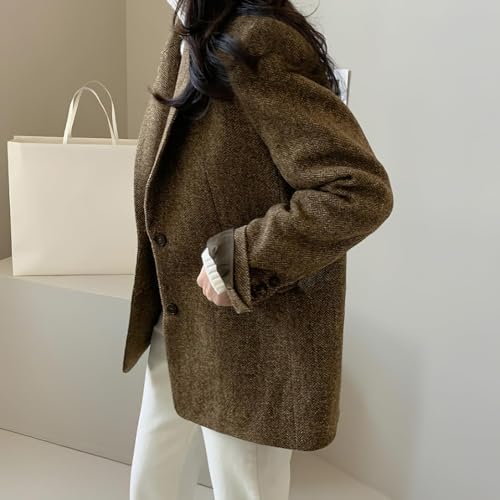 Women's Autumn Winter Pure Color Wool Blended Blazer Coa