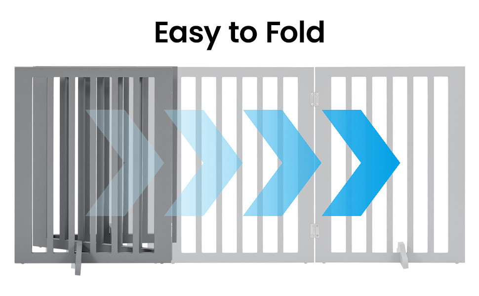 ⭐【Foldable 3 Panel Pet Gate】This pet gate includes 3 connected panels with smooth 180° hinges, allowing flexible positioning as a stair gate, doorway barrier or room divider. Easily folds flat for compact storage when not in use.