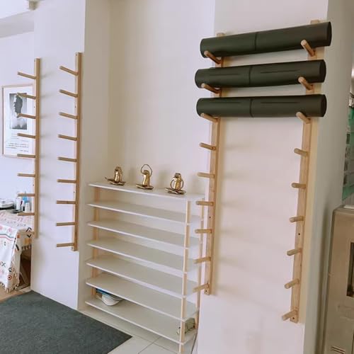 Transform any space into your personal workout area without the need to visit a fitness center. This versatile wall rack is perfect for organizing your home gym, garage, or basement, keeping your exercise gear neatly stored and easily accessible. The high-quality wooden construction of this mat hanger offers a durable and stylish solution for storing various sizes of yoga mats, foam rolls, and accessories, ensuring your fitness paraphernalia is no longer scattered on the floor. Ideal for yoga studios, gyms, homes, or offices, this sturdy organizer helps maintain a clutter-free environment. Included in your purchase is 1 wooden yoga mat holder wall mount, designed to meet your storage needs while complementing your space.