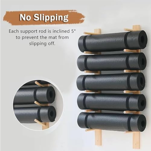 - Solid Wood Construction: Crafted from high-quality solid wood, this yoga mat rack features a smooth, burr-free surface for safe handling. Its 15° inclined design ensures your yoga mats stay securely in place.