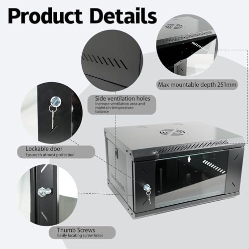 WUDLEP 6U Wall Mount Network Server Cabinet, 55lbs Weight