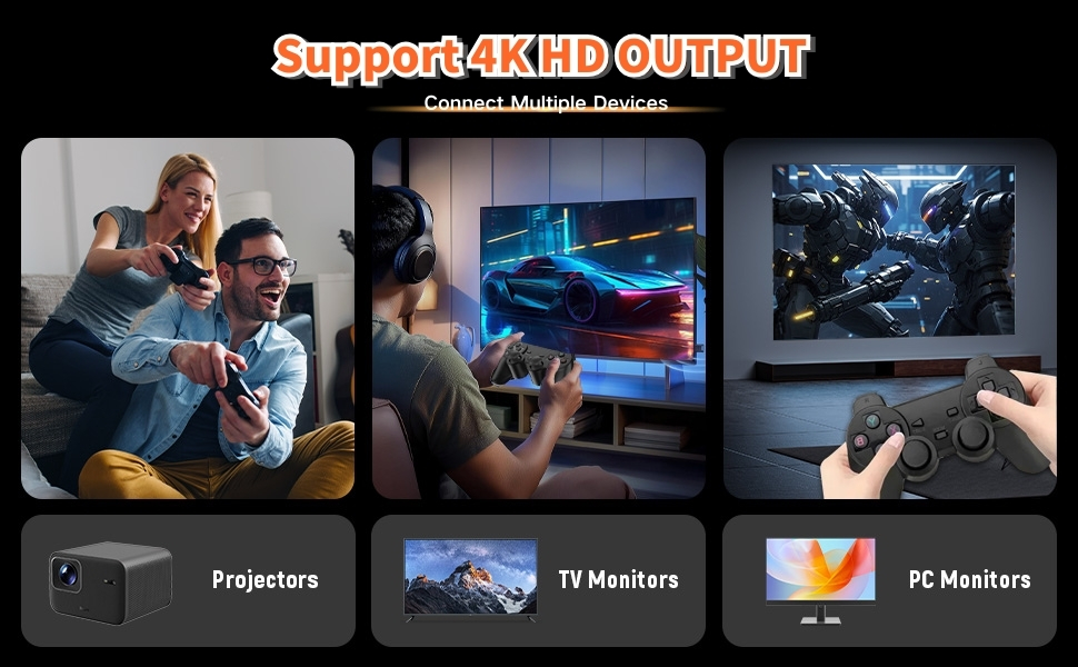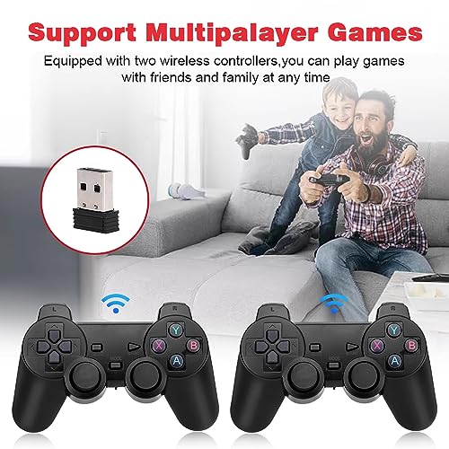 - 【2.4GHz Wireless Controllers】This wireless retro handheld game console with built in games comes with 2 PCS 2.4GHz wireless game controllers, wireless connection between game controller and game stick, and up to four players online battle together.