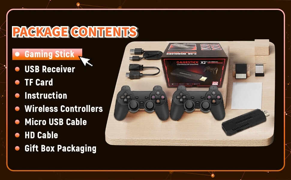 - 【High-definition HDMI Output】Enjoy retro video games on the big TV screen by connecting to your TV using a mini HDMI cable. This video game stick supports high definition HDMI output. Make sure your screen has a HDMI input port