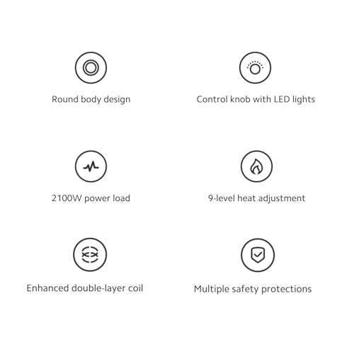 Xiaomi Induction Cooker Lite UK, Double-layer Coil 9-level Power and Temperature Control, 2100W High-power Heating, LED Light Sleek control knob, Safety Lock, Round Body Fashion Look Desig