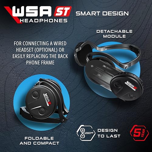 XP Metal Detectors WSA ST Fastest Wireless Stereo Headphones Compatible with Deus II RC and WS6 ST Master, Foldable, Compact and Smart Design, Lightweight and Fully Rainproof (WSAST)