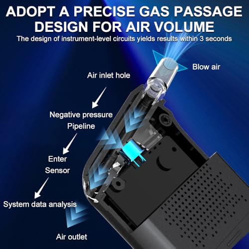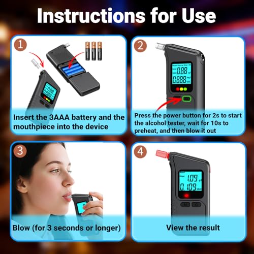 - 【Easy to Use】The breathalysers are simple to operate. Insert 3 1.5V AAA batteries (not included), align your mouth with the breath port, blow for over 3 seconds, then wait patiently for 3 seconds, and the alcohol concentration will be displayed on the screen. This alcohol tester breathalyzer is equipped with intelligent detection functionality, displaying different colours and warnings based on alcohol concentration, enabling you to understand the measurement results more intuitively and safely.
