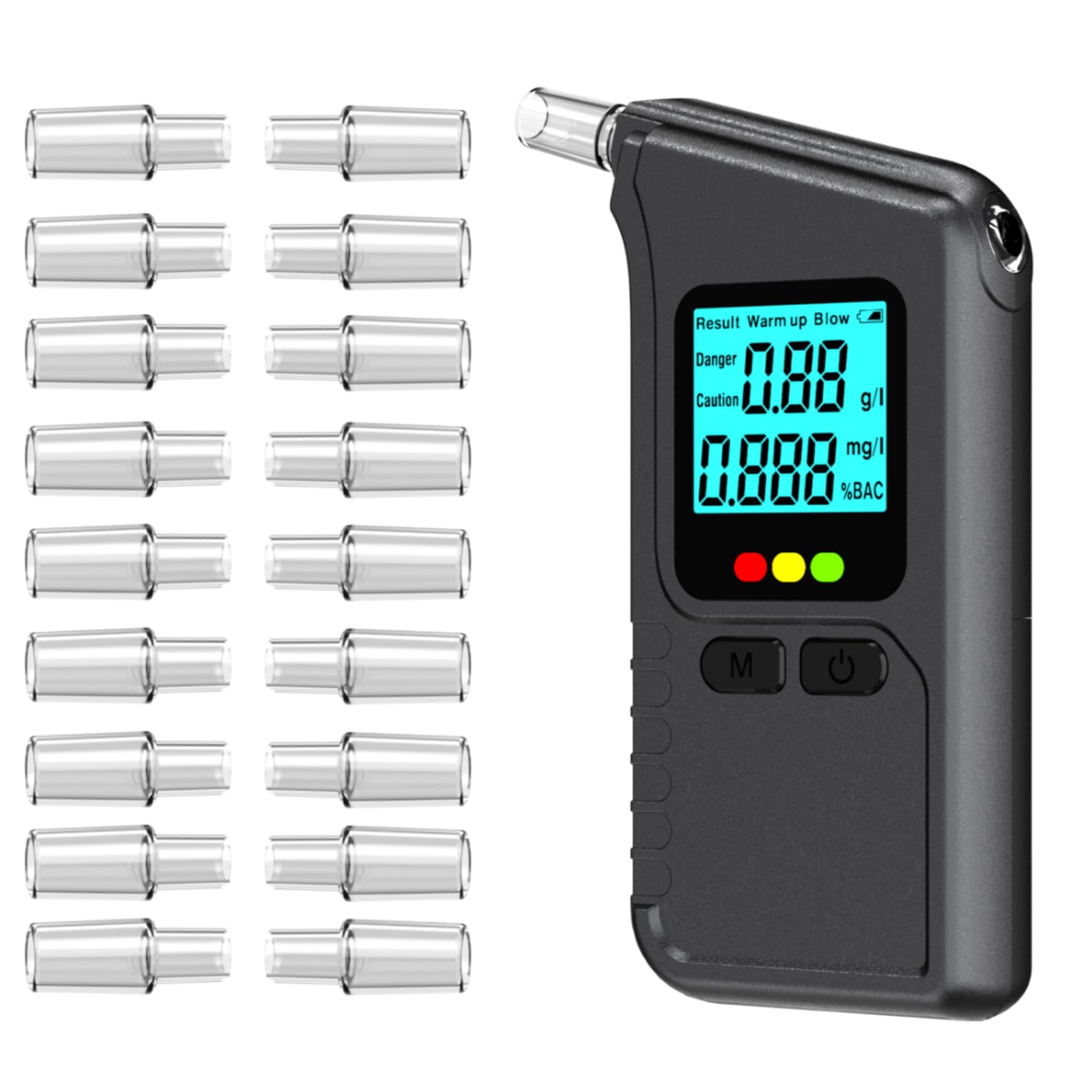 Yhtcwy Breathalyser Alcohol Tester, Portable Alcohol Breath Tester with 20Pcs Mouthpieces, Professional Breathalyser with LCD Digital Display, Breathalyzer for Home Party Use