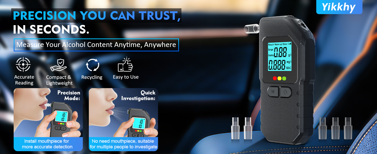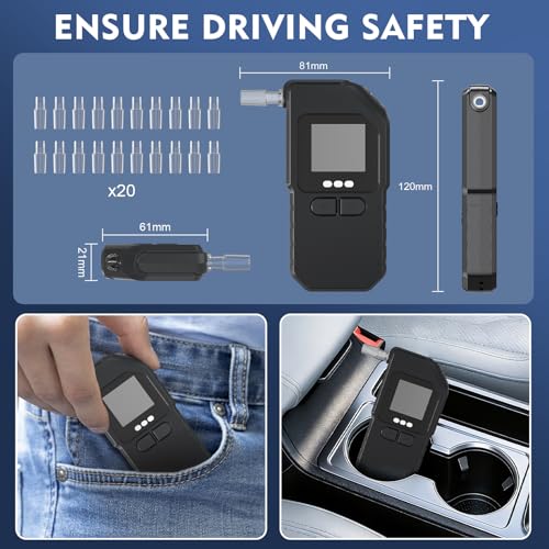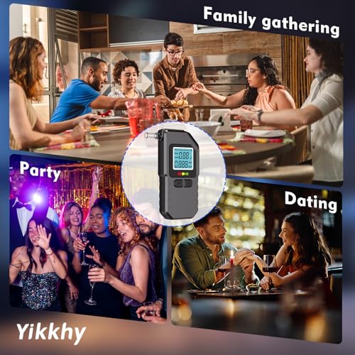 Yikkhy Alcohol Tester Breathalyzer, High Accurate Professional Breathalyser UK with 20 Mouthpieces and 3 Battery, Portable BAC Test Device with Digital LED Display for Home Outdoor Party
