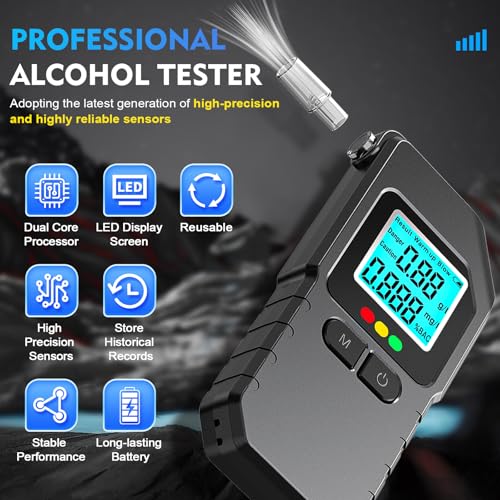 ✅ Dual-Sensor Precision: Our professional breathalyzer combines a pressure sensor and a semiconductor sensor for highly reliable BAC readings. This dual-technology ensures accurate results by measuring your breath sample correctly and filtering impurities, giving you confidence in every test.