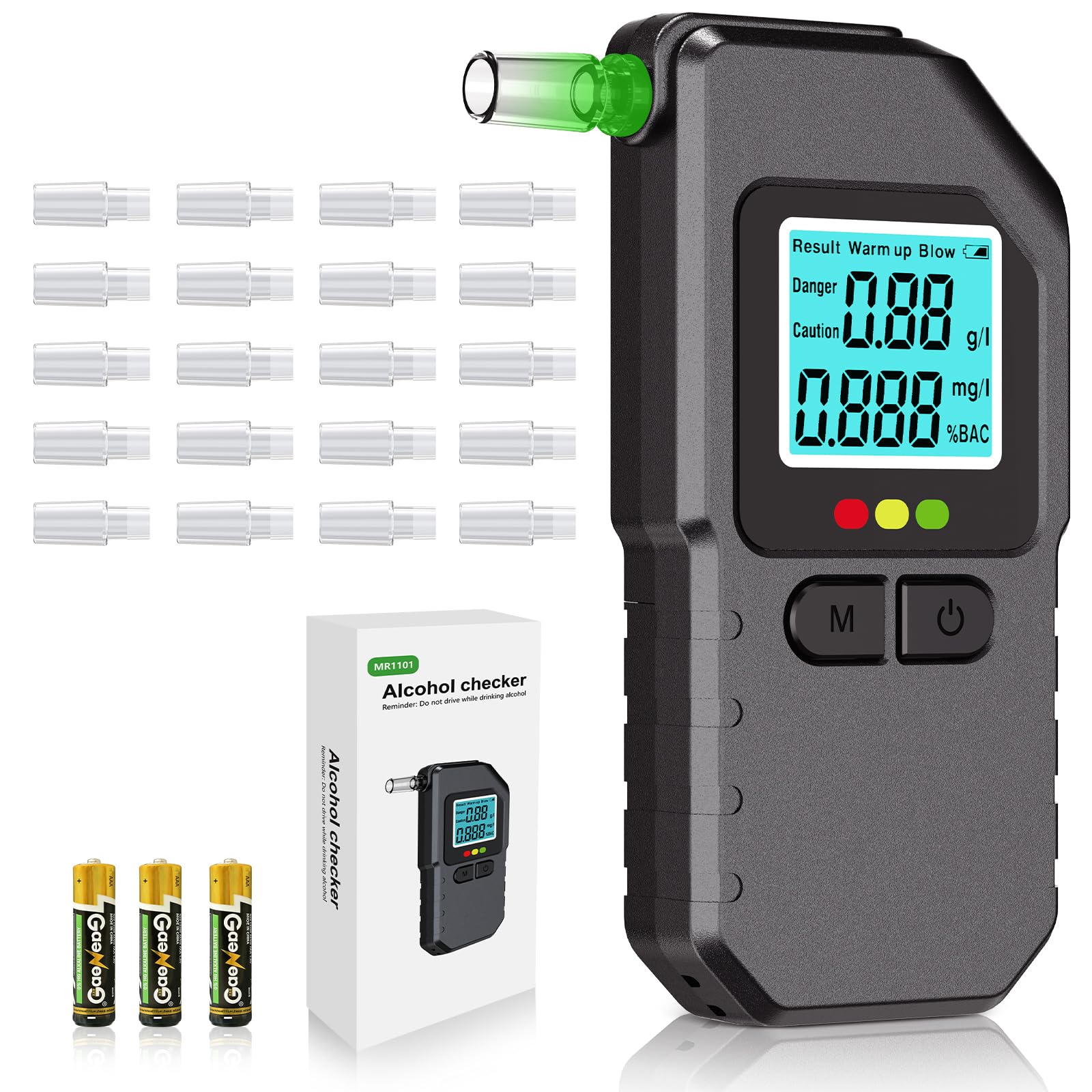 ✅ Complete Alcohol Testing Kit: Get everything you need in one box: includes 20 washable mouthpieces and 3 AAA batteries. Very suitable for personal or party gatherings, and also an excellent gift for family, friends, and partner ones! Tip: Please use at least 20 minutes after drinking alcohol to obtain the most accurate results.