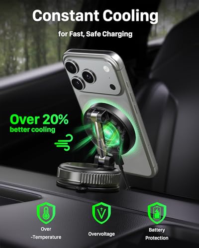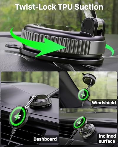 YOSH for Magsafe Car Mount Charger, 15W Fast Charging [Nano Gel & Vacuum Suction Cup] Magnetic Wireless Car Charger, Magnetic Holder for iPhone 17-12 Series & All Phones with Included Metal Ring