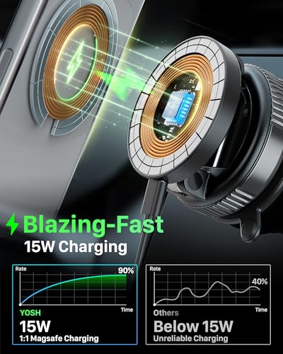 YOSH for Magsafe Car Mount Charger, 15W Fast Charging [Nano