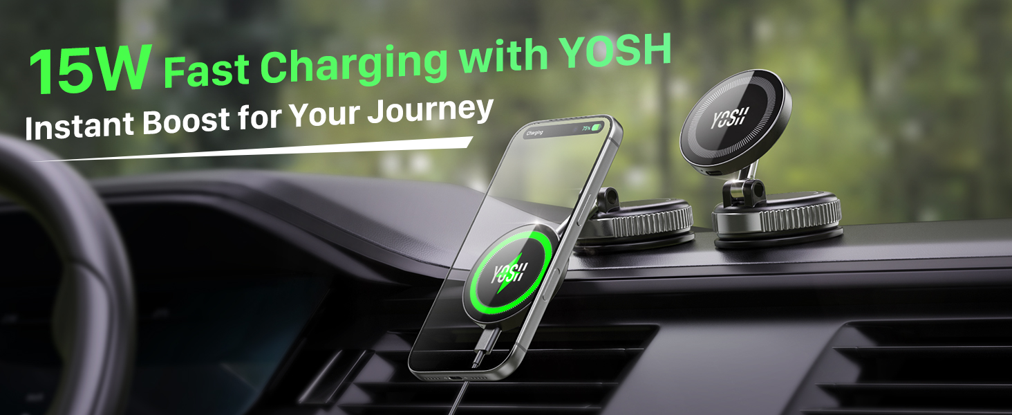 15W Fast Wireless Charging: Charges your phone fully in just 2 hours. Features the built-in YOSHQI Chip 3.0 to prevent overcurrent, overvoltage, and overheating—protecting your phone and extending battery life. *Tip: For stable charging, use a ≥18W/12V car adapter instead of your car's built-in USB port