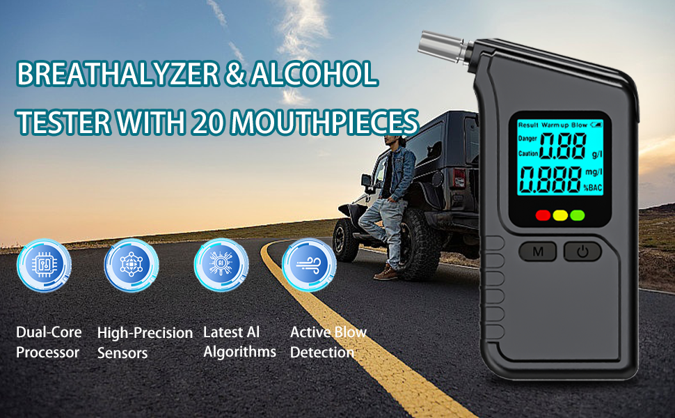 【High precision tests】This alcohol tester Features both air‑pressure and semiconductor double sensors, delivering faster response and higher precision than single-sensor breath testers. If the alcohol content exceeds the preset limit,This device will send video heating to remind you of your safety. Ideal for drivers.