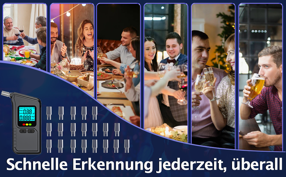 【20 Mouthpieces】Supplied with 20 detachable and reusable mouthpieces for multiple users, the mouthpieces can be cleaned and recycled. Super compact design, the Breathalyzer fits in your pocket and is easy to hold and carry wherever you go.