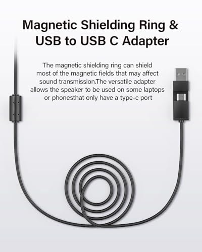 【3 Playback Modes】- This usb speakers permits audio input via USB, Type-C and 3.5mm jack. An LED light strip adorns the PC speaker, with a light button allowing you to switch between five adjustable modes: Rainbow, Flow, Gradient, Monochrome and Rhythm. It creates an intense atmospheric effect.