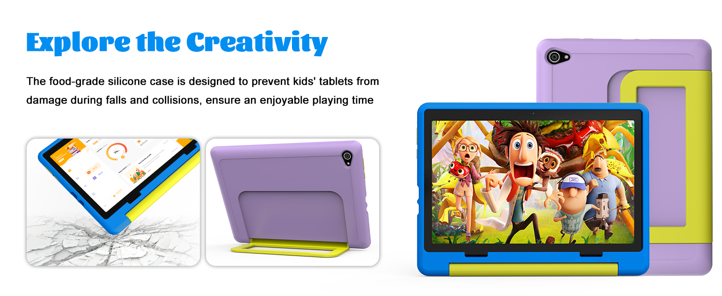 【 Friendly educational content 】 Kids tablets can access the latest downloaded learning content and puzzle games. Children can learn in games and experience the joy of learning, for example painting, mathematics and music. Our learning tablet for children comes with a free protective case made of food-safe silicone. Protects the screen from scratches and prevents drops and bumps of the tablet