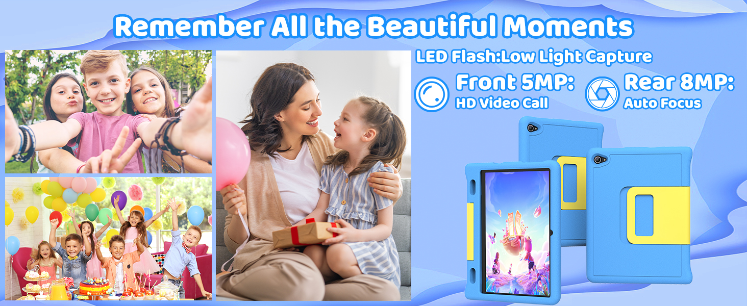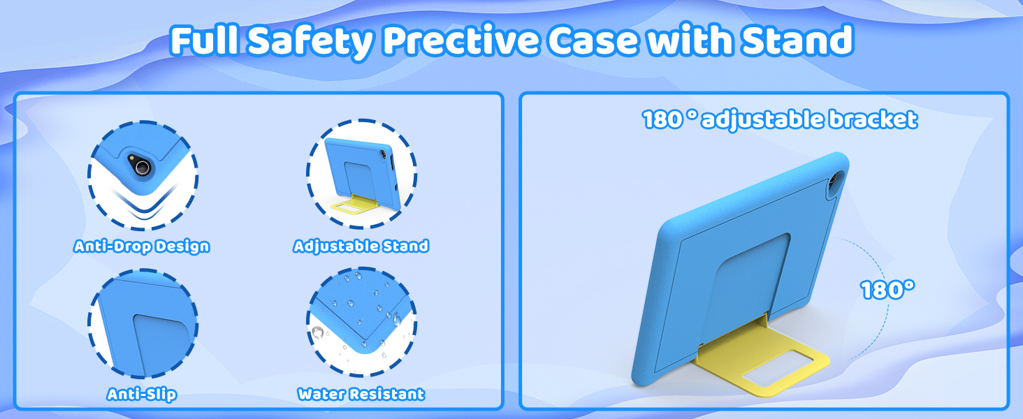 - 【Tablet Designed Specifically for Kids Daily Use & Learn】This tablet for kids is lightweight and easy to carry, equipped with a specialized shock-absorbing and anti fall shell that can effectively resist daily drops, collisions, and scratches. Built in adjustable bracket, paired with dual stereo speakers, 5MP+8MP dual cameras, and BT 5.3 and Wi Fi 6, providing a fully functional user experience that children can't resist. If you encounter technical issues while using the tablet, you can contact us at any time. It comes with a one-year warranty service.