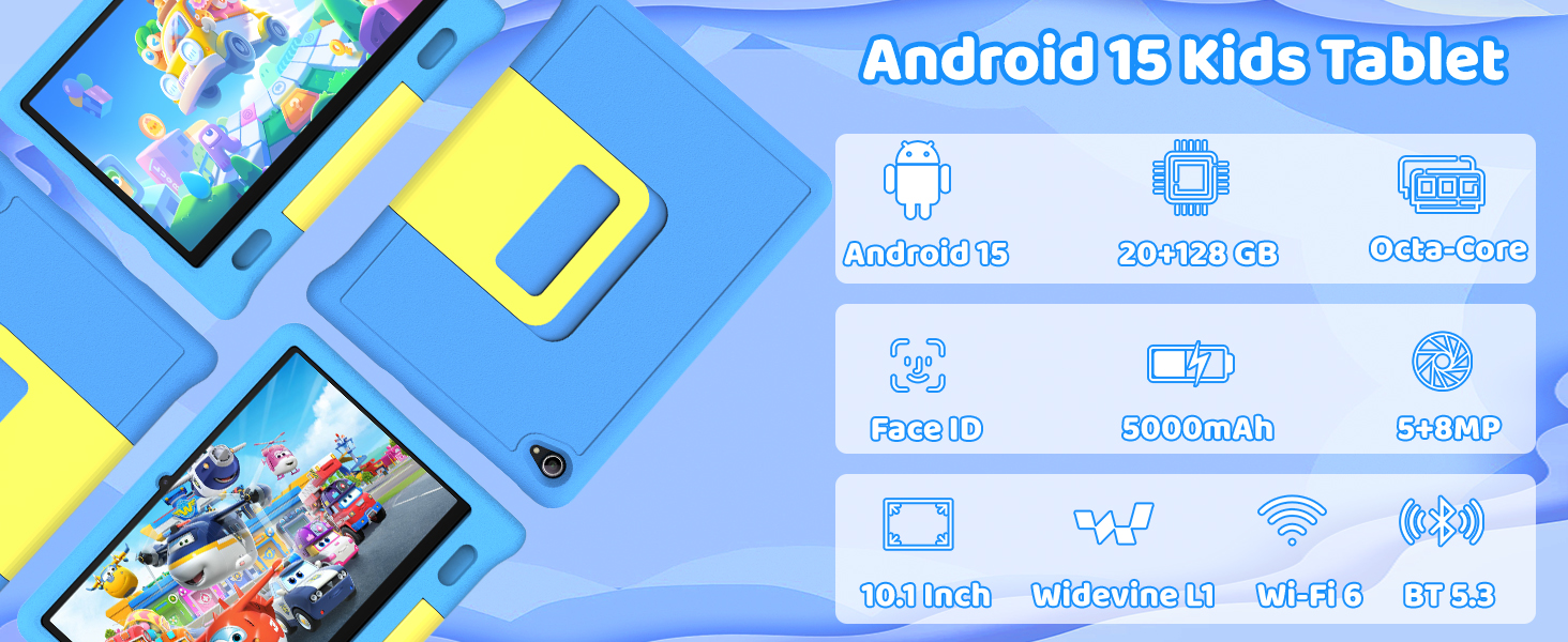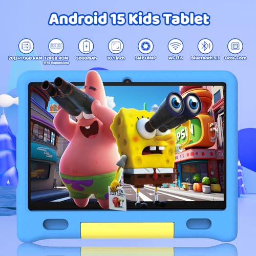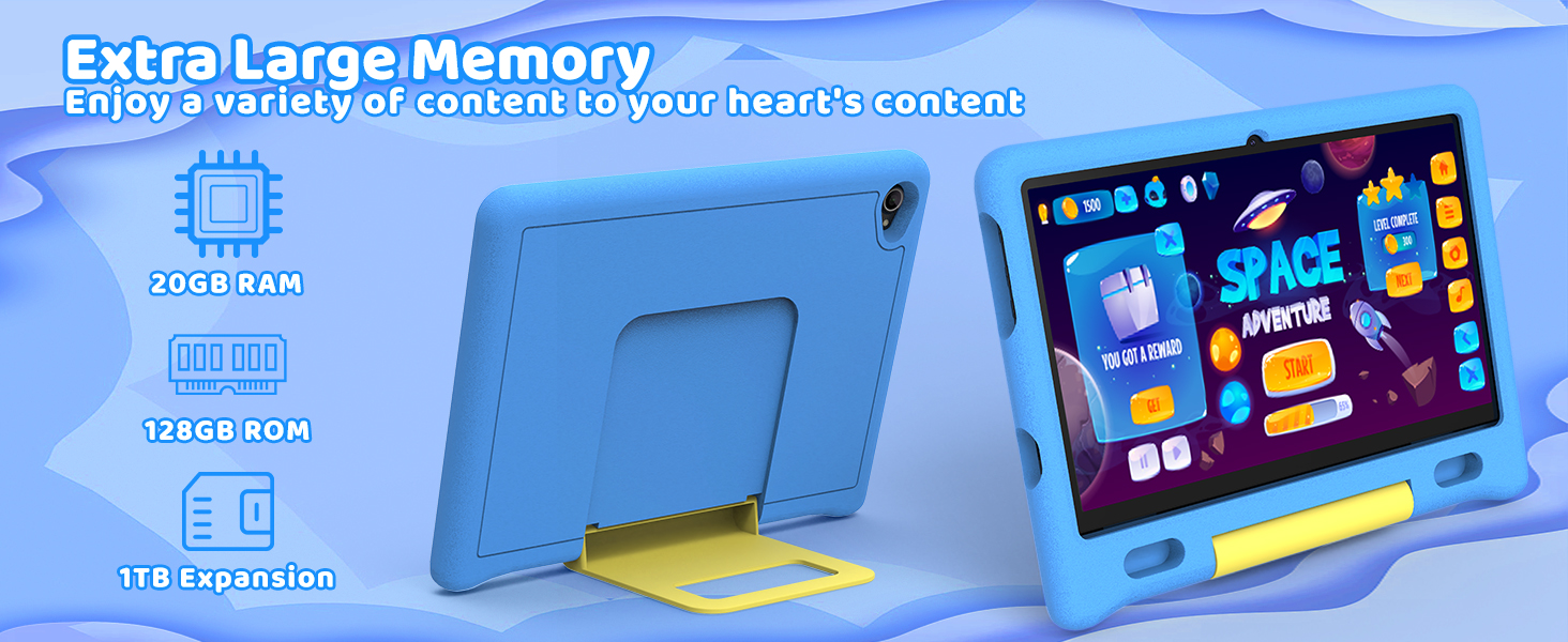 - 【Android 15 tablet with 20(3+17)GB+ 128GB +1TB】The 10.1 inch kids tablet has undergone significant upgrades, featuring customizable, user-friendly settings and enhanced privacy controls tailored for young users. Powered by Android 15, this kids tablet is equipped with 20GB RAM and 128GB internal storage (ROM)—ample space to store your child’s favorite movies, educational apps, interactive games, and precious photos. For even more storage flexibility, it supports expandable memory via a TF card (up to 1TB), providing extra capacity for additional content, files, and downloads to grow with your child’s needs.