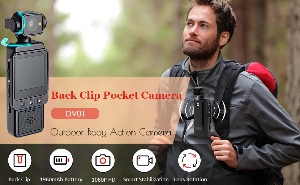 - Multiple Mounting Options: The camera can be clipped to your chest or mounted on tripods and other devices using a 1/4 inch screw hole, allowing you to record footage anywhere, anytime.